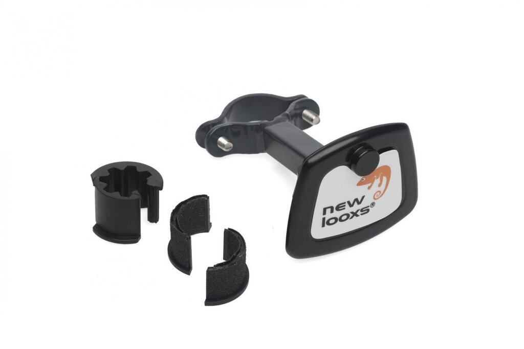 New Looxs Smart-Lock bevestigingssysteem New Looxs bevestigingssysteem voor afneembare mand A-head. Specificaties: Kleur: zwart Materiaal: gelakt staal Diameter stuurpen : 21,1 / 25,4 mm